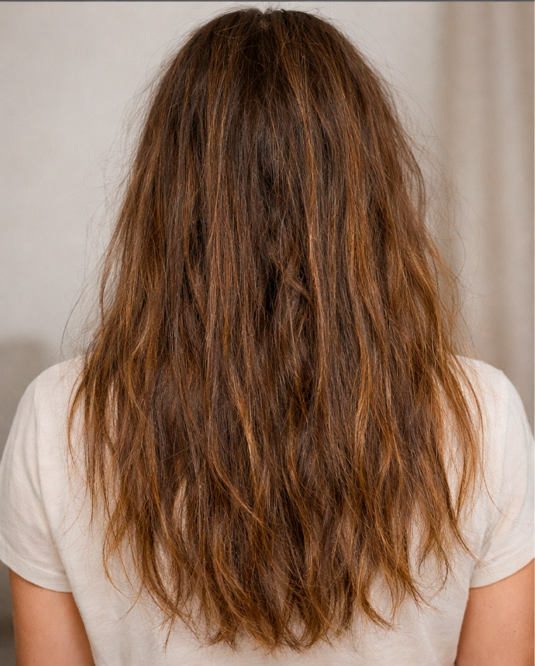 На фото: результат после использования Шампуня, Маски, Спрея 21 в 1 и Масла для волос